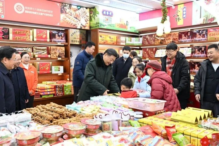 日前,习近平总书记来到天津古文化街,走进桂发祥十八街麻花、果仁张等“老字号”,问品种、问客流、问价格,他还掏钱买了几盒麻花和栗子羹,送了两盒给身旁的一名小男孩。习近平说,各级党委和政府要加强节日期间民生商品的产销保供,确保数量充足、品类丰富、质量可靠,让广大群众放心消费、快乐过年。