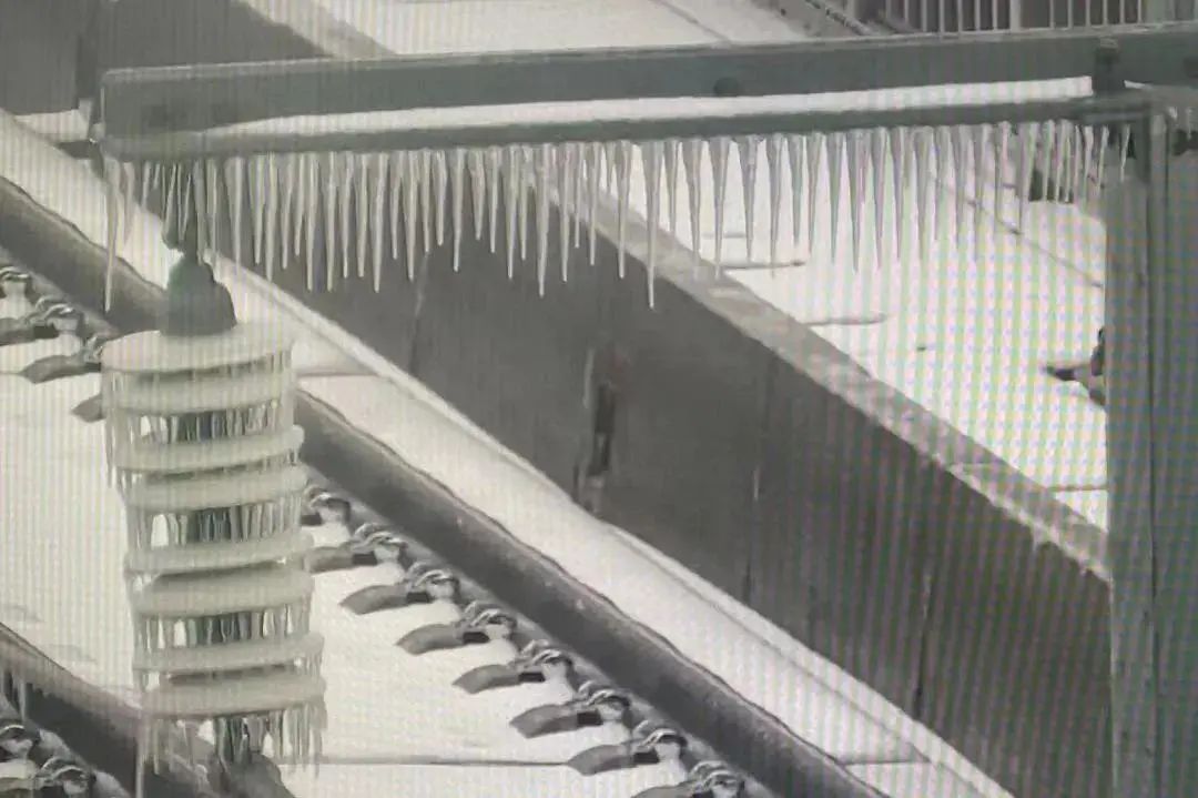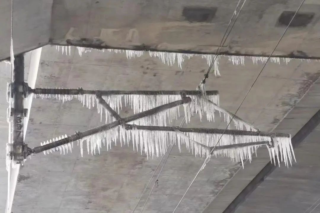 然而,在冻雨天气影响下,受电弓和接触网都结冰了。在冰的阻隔下,受电弓与线路接触不良产生电弧,也就是我们看到的列车顶部的火光。