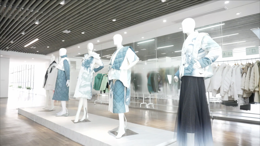 王秋寒说:“今年羽绒服的设计将重点展示景德镇陶瓷文化,我们也在推动与中国国家级非物质文化遗产夏布绣传承人的合作,将‘麻布绣花’的非遗文化‘绣’上羽绒服。”