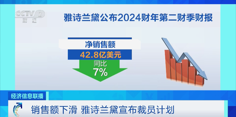 当地时间5日,美国化妆品巨头雅诗兰黛集团发布2024财年第二季度财报,数据显示净销售额同比下滑7%。集团表示,将在今年前半年裁员3%到5%。