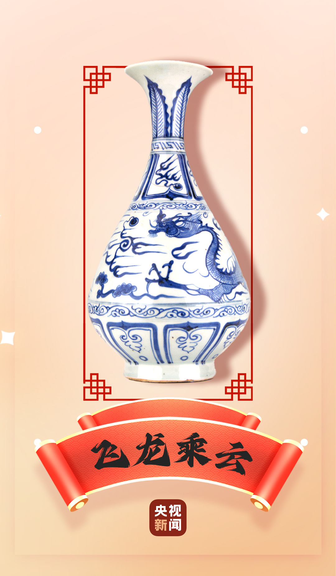 这件玉壶春瓶的核心图案是云龙纹