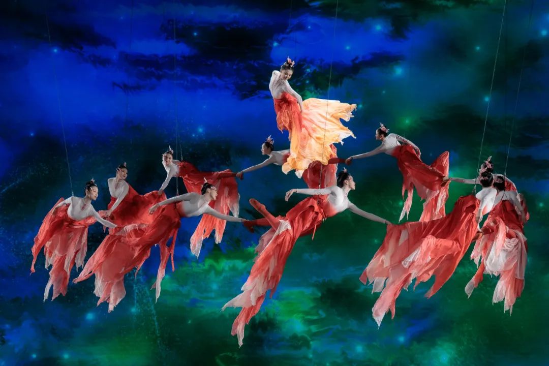 说《锦鲤》考验的是“数据”能力一点都不为过。每个演员的身高、体重、力量都不同,不可能一套数据适配所有人,技术人员要根据不同演员发力的舒适感,为每一个人调试程序。威亚起伏时间误差0.1秒或者高度误差5公分,都会导致造型乱套,或者让飞行中的演员撞到一起。