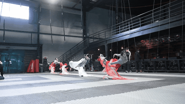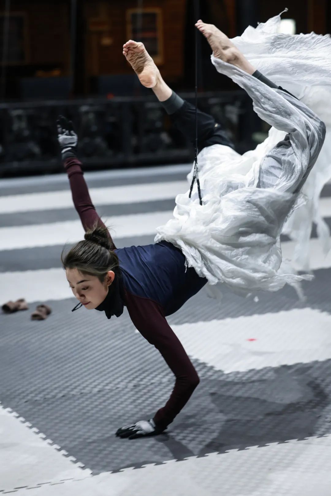 在舞蹈中,弹簧绳的伸缩会在瞬间给出一个强大的助推力并迅速将这个力消解掉。加上威亚线很长,演员荡出去偏差5度再荡回来就会偏离目标位置。一个不小心,就会被威亚拽着“乱飞”,这种对表演精确度的要求在其他舞蹈中极其罕见。