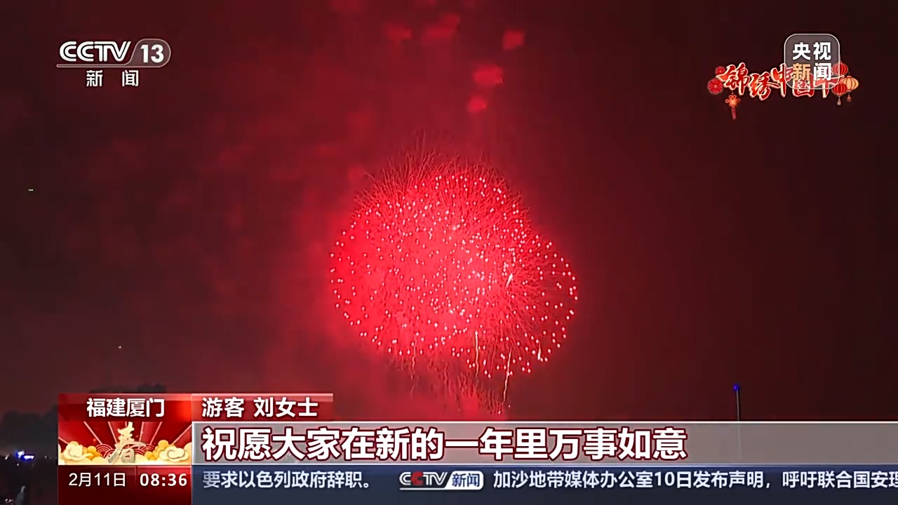 2月10日晚上8点,2024年海峡两岸焰火晚会在厦门、金门两地同时举行,为两岸同胞送上龙年新春的祝福。