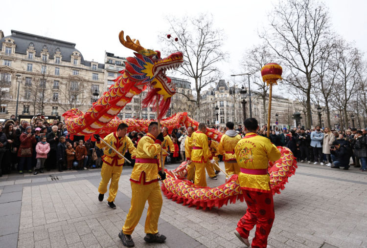 在美国纽约,中国龙形文物巨幅海报亮相时报广场,向全球人民献上新春祝福。在新西兰,总理拉克森在奥克兰参加“新春花市同乐日”活动,与当地华人共迎新春。在毛里求斯首都路易港,该国副总理胡斯努与众人敲响锣鼓,共同启动“欢乐春节”花车巡游。在法国巴黎香榭丽舍大街,长长的舞龙在龙珠引导下上下翻飞,博得阵阵喝彩。游客让-巴蒂斯特说,世界各地都在庆祝春节,因为春节带来的快乐能“感染所有人”。