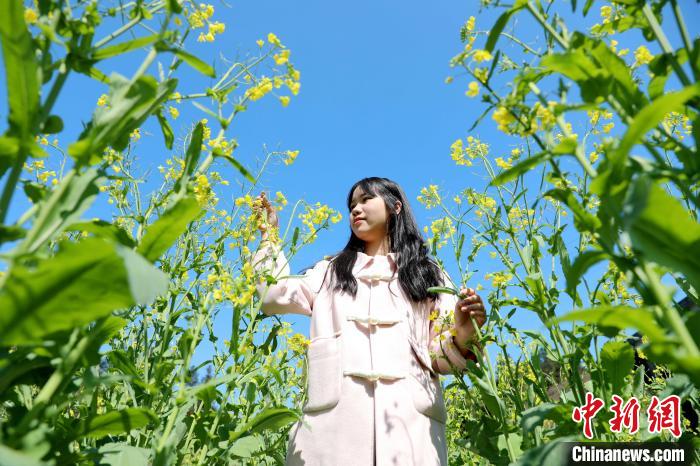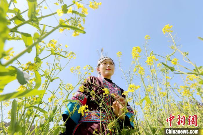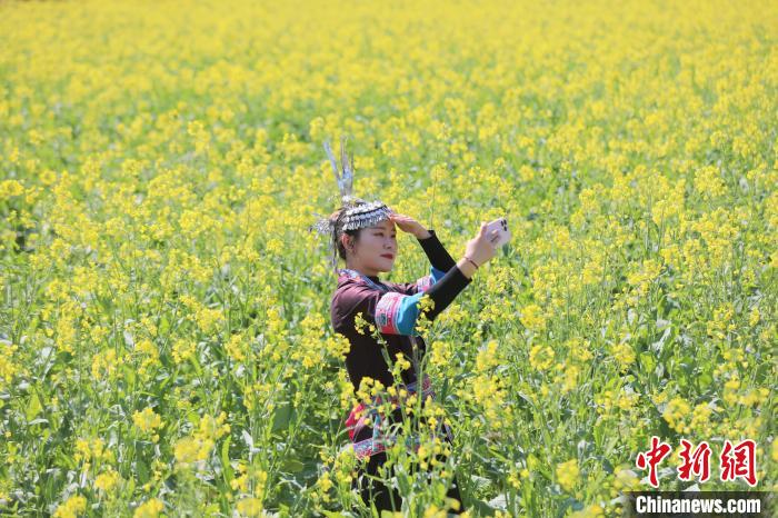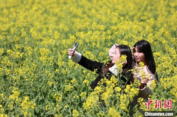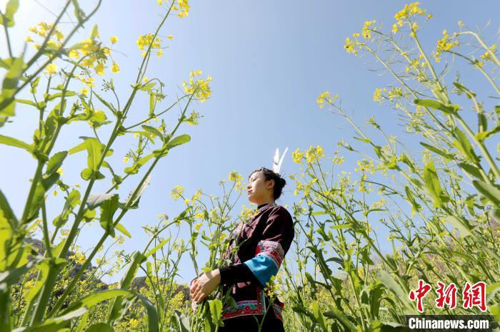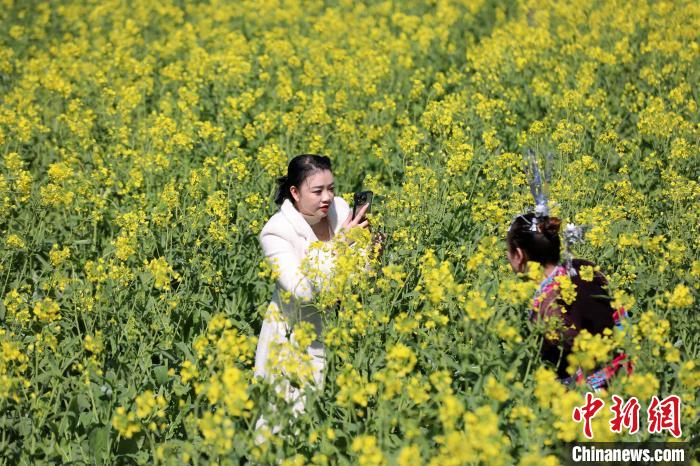 图为游客在广西三江侗族自治县老堡乡塘库村的油菜花田赏花。龚普康 摄