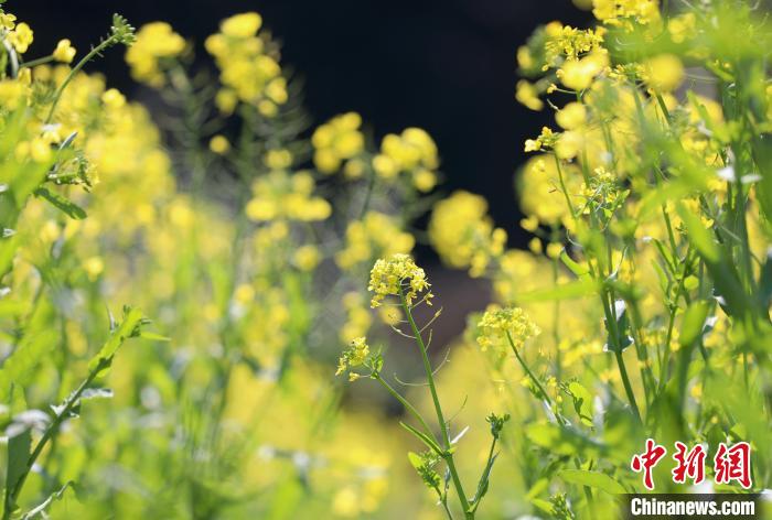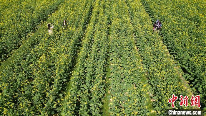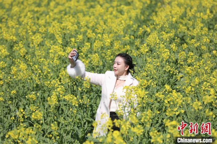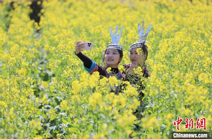2月11日,广西三江侗族自治县老堡乡塘库村的百亩油菜花迎春绽放,宛若金色地毯铺满山间,田间处处流金溢彩、清香沁人,吸引民众及游客前往踏春赏花,乐享春节假日。