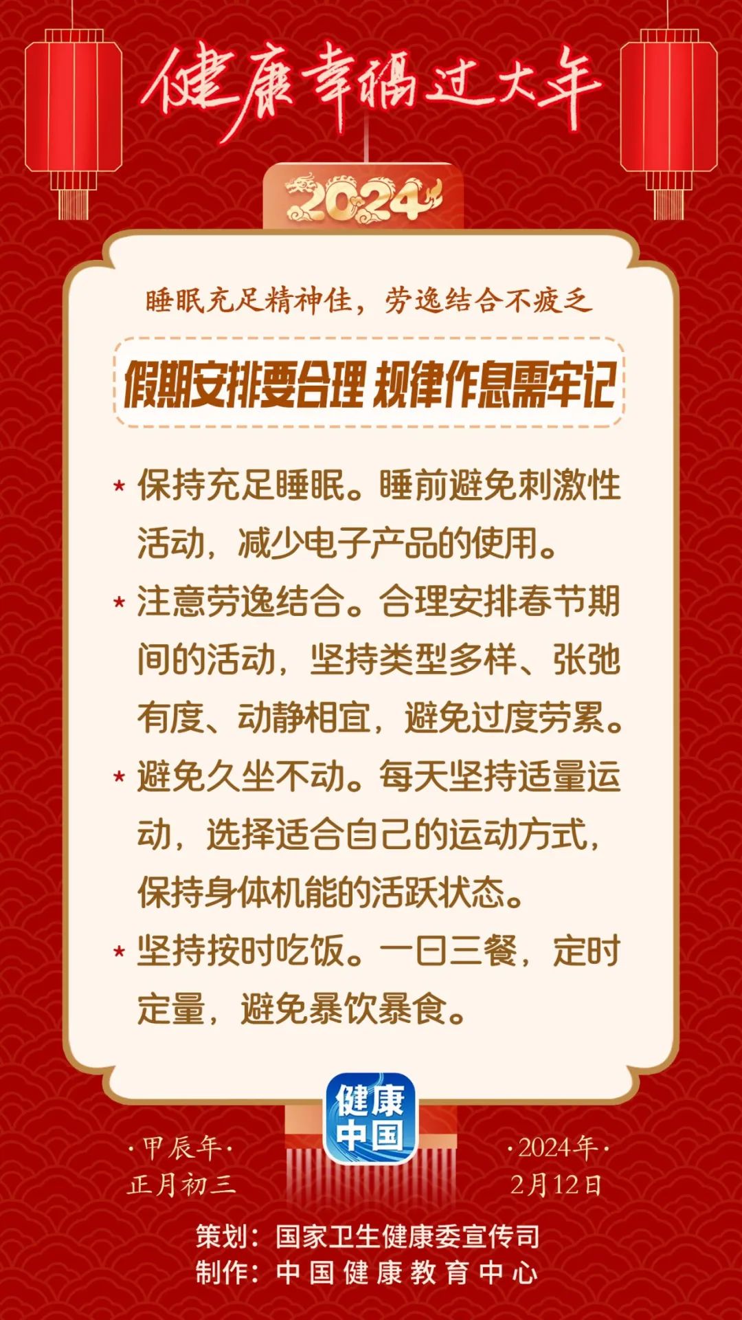 睡眠充足,劳逸结合丨假期安排要合理,规律作息需牢记【健康幸福过大年】