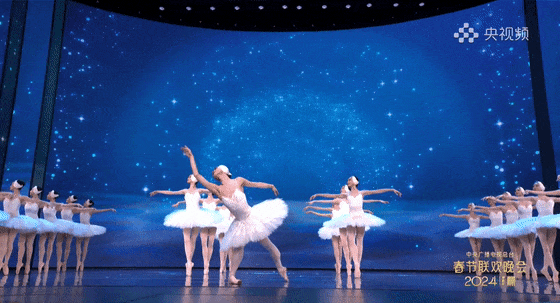 在舞蹈的后半部,来自上海芭蕾舞团的演员们再现了真正的《天鹅湖》,当呆萌碰撞优雅,一出丑小鸭与白天鹅的故事妙趣横生。尽管这些专业的芭蕾舞演员已经演绎了数百场《天鹅湖》,但在春晚的舞台上依然有新的挑战。比如在升降台上以足尖起舞,演员就需要克服对高度的恐惧。