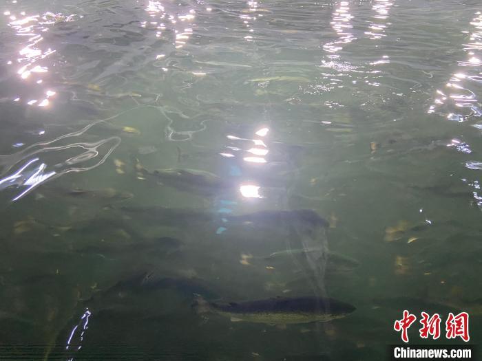 近日,记者走进该养殖场的RAS7养殖池,只见一条条强壮的大西洋鲑鱼正在池子中自由“翱翔”。