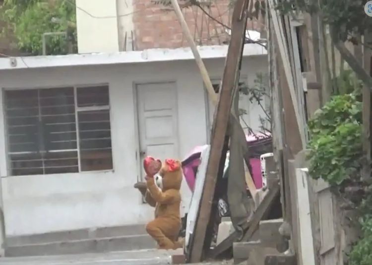 根据秘鲁警方的通报,事件发生在秘鲁首都利马的圣马丁德波雷斯区。由警察假扮的玩偶熊右手拿一张写着“你是我微笑的理由”的纸片,左手拿着一个心形气球在毒贩楼下“告白”。