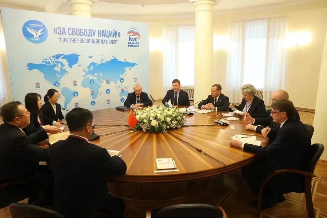 梅德韦杰夫欢迎刘建超率中共代表团参加“共同抵制新殖民主义”国际政党论坛创立大会,表示当前俄中关系处于历史最好时期,两国各领域合作不断取得新进展。统一俄罗斯党同中国共产党保持密切交流合作,在国际政党多边场合加强协调配合,促进凝聚政党共识,发出“全球南方”的共同声音,有力维护国际公平正义。