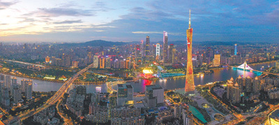 广东省广州市,广州塔与珠江两岸城市璀璨灯火交相辉映。广东省2023年地区生产总值达13.57万亿元,经济总量首次突破13万亿元。新华社记者 刘大伟摄
