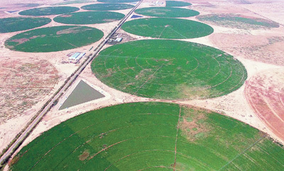内蒙古自治区加快推进国土绿化,“三北”工程攻坚战和三大标志性战役进展顺利。截至2023年底,累计完成造林556万亩、种草1743万亩、防沙治沙950万亩。图为乌兰布和沙漠苜蓿种植基地。新华社记者 李云平摄