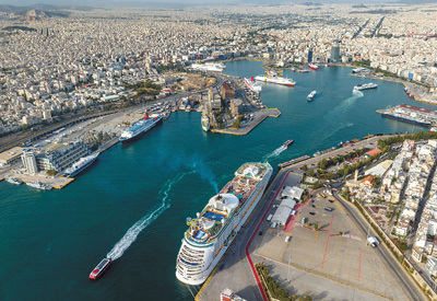 中国企业参与投资运营的希腊比雷埃夫斯港渡轮码头,游轮靠岸。在中企助力下,比雷埃夫斯港发展成为欧洲十大集装箱港口之一。尼古拉斯·格洛戈维蒂斯摄