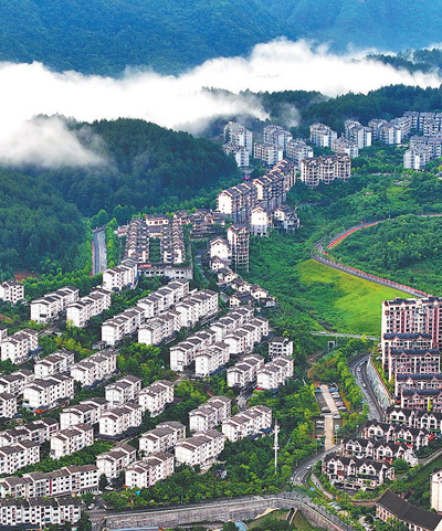 重庆市万盛经开区北门村移民新村,一栋栋错落有致的民居与高山相映成景。让搬迁群众“搬得出、稳得住、能致富”,各地因地制宜发展特色产业,助力农民持续增收。曹永龙摄(人民视觉)