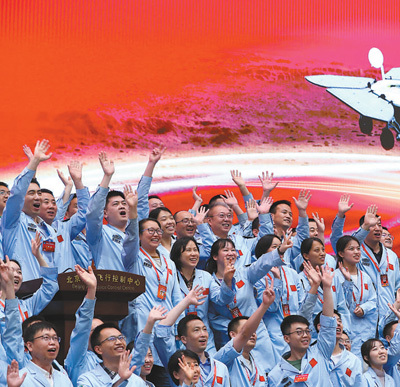 北京航天飞行控制中心青年科技人才群体庆祝我国首次火星探测任务着陆火星取得成功。目前,我国研发人才数量全球第一。新华社记者 金立旺摄