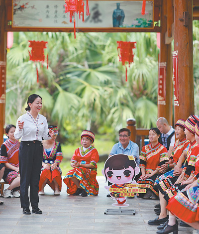 广西壮族自治区桂林市恭城瑶族自治县,党员在“桂姐姐”课堂上进行宣讲。近年来,当地依托新时代文明实践中心,组织“桂姐姐”宣讲队,传播党建、法律和妇女儿童权益保障等知识。各地新时代文明实践中心成为精神文明建设的重要阵地,在加强思想政治引领、培育社会文明风尚等方面发挥着重要作用。刘教清摄(人民视觉)