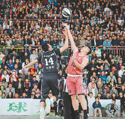在贵州省台江县举行的2023全国和美乡村篮球大赛(“村BA”)总决赛现场。以“村BA”为代表的乡村体育赛事广受关注。贾 智摄(影像中国)