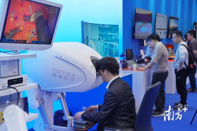 “它的一大特点是灵活性和集成度都很高,通过机器操作,让手术的过程更精准。此外,它还有低延时和沉浸式三维高清图像,可以放大8-15倍,视觉上更清晰。”精锋医疗副总裁陈文鑫说。