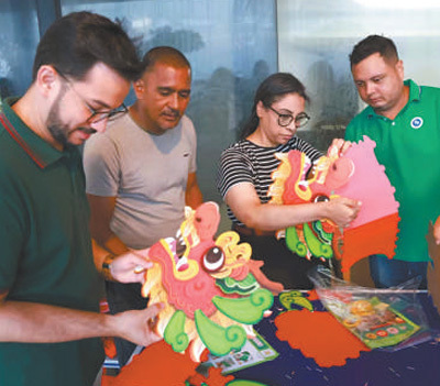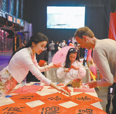 “龙”“福”“春”……在书法剪纸展台上,一幅幅书法作品传递着节庆的氛围。当地居民拉莫尔拿起一张“福”字,向工作人员询问寓意。拉莫尔就职的企业与中国有频繁的业务往来,他曾两次到访中国。他说:“中国文化博大精深,中国人有着强烈的文化认同感。希望多多举办这样的活动,让更多人了解中国文化。”