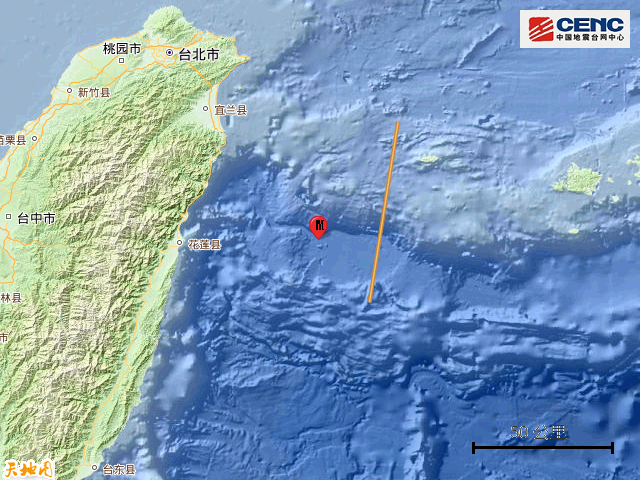 中国地震台网正式测定:台湾花莲县海域发生4.0级地震