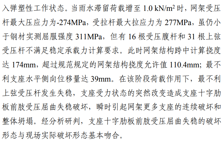 屋面多次维修大量增加荷载、屋面堆放珍珠岩及因珍珠岩堆放造成雨水滞留不断增加荷载,综合作用下网架结构严重超载、变形,导致屋顶瞬间坍塌。