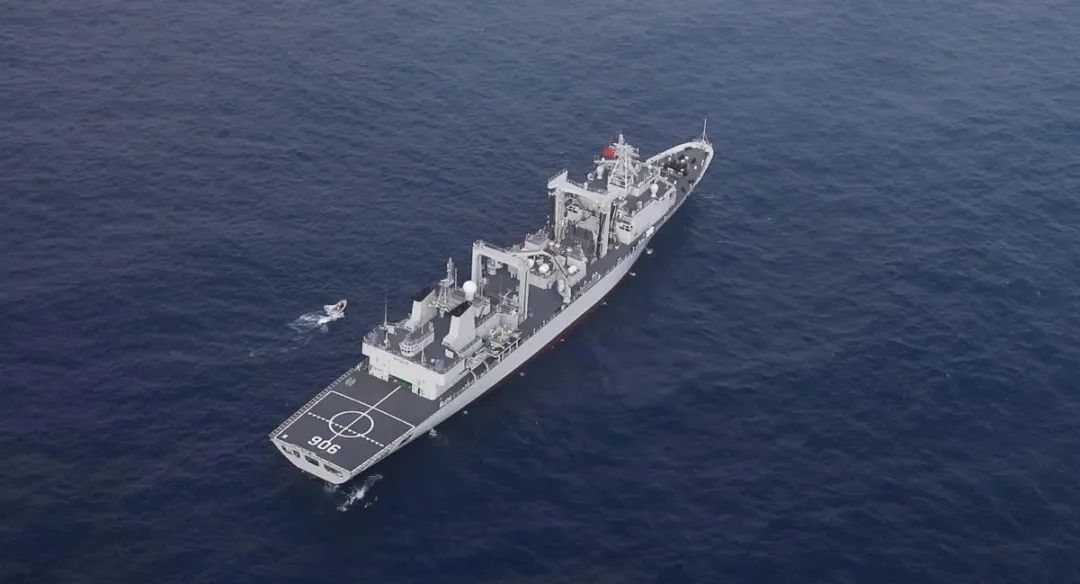 综合补给舰洪湖舰,舷号906,是我国自主研究设计建造的新型远洋综合补给舰,主要担负编队伴随补给保障任务,可通过多种方式对舰艇编队实施多种物资补给。具有补给速度快、适配舰型多、保障效率高等特点,曾执行第25批、第37批护航任务。