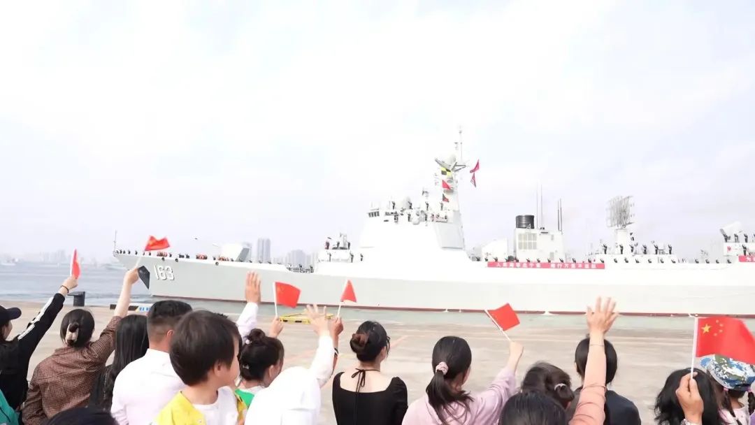 编队舰艇缓缓驶离码头