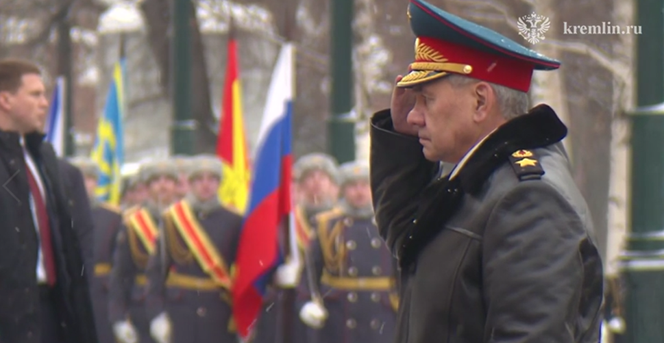 塔斯社报道说,俄罗斯防长绍伊古也参加了敬献花圈仪式。