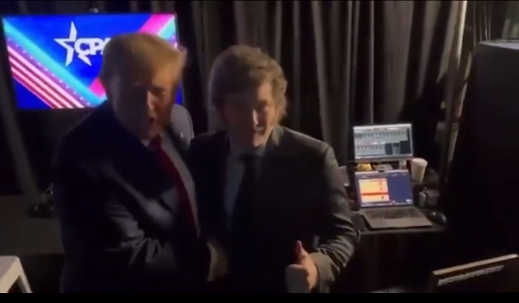 《布宜诺斯艾利斯时报》称,在CPAC上发表演讲前,米莱在后台会见了特朗普。阿根廷总统发言人阿多尼在社交媒体上发布了两人会面的视频,视频中米莱情绪激动,热情地与特朗普打招呼。米莱说,“我非常高兴,你对我非常慷慨。”
