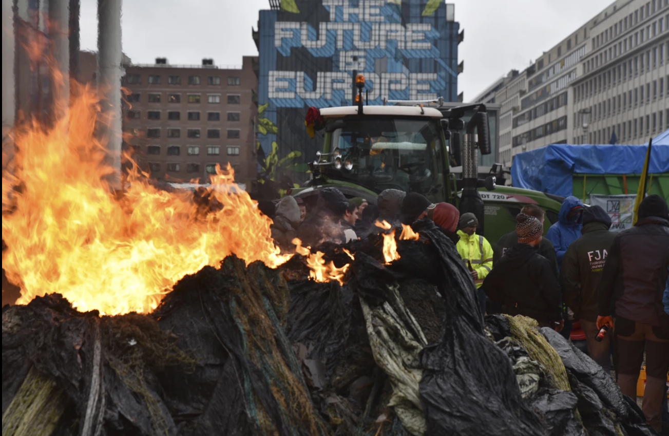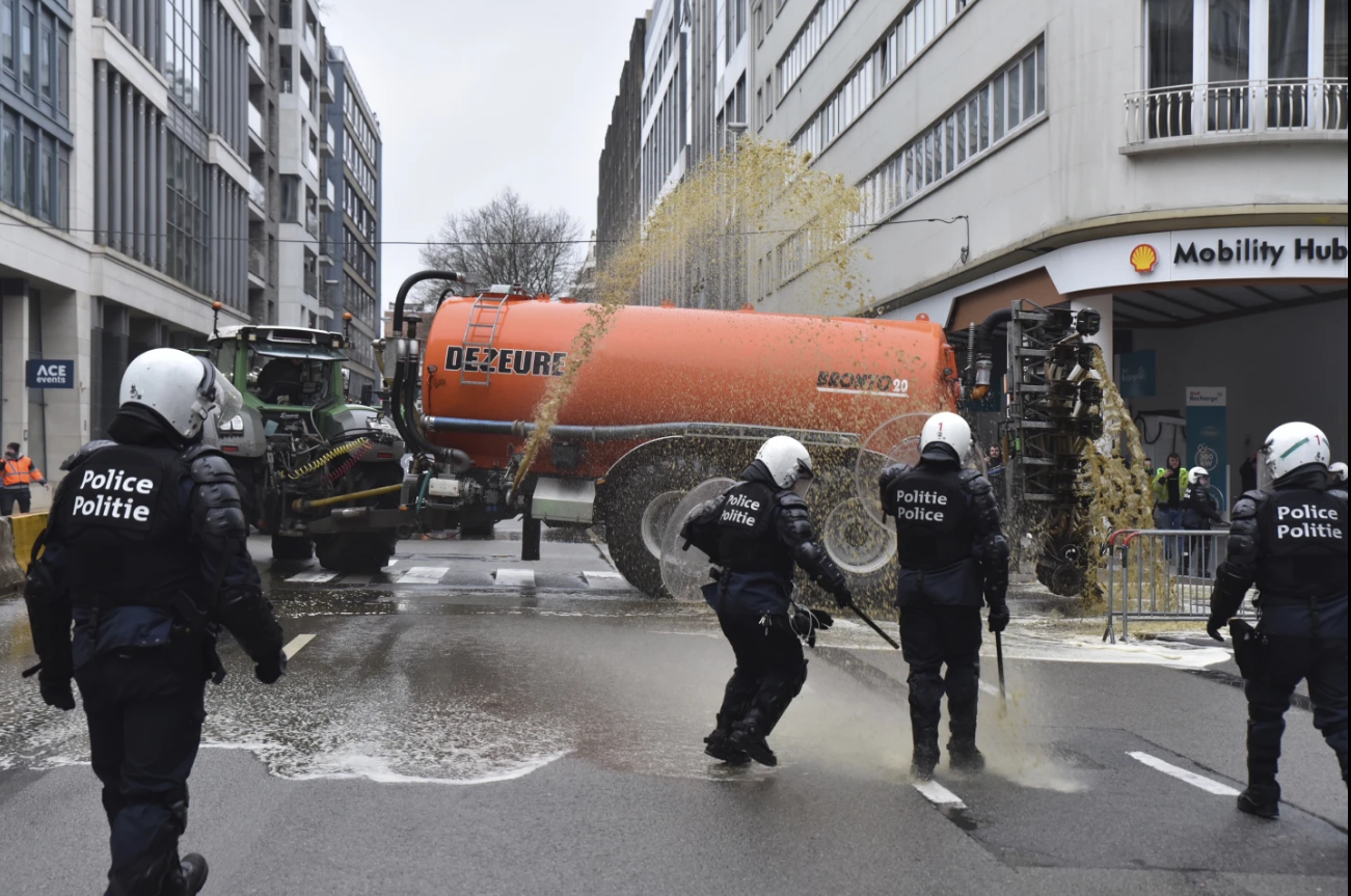 【环球网报道 记者 张晓雅】欧洲农民抗议的浪潮此起彼伏。据美联社最新消息,欧盟农业部长会议召开当天,当地时间2月26日,愤怒的比利时农民驾驶拖拉机涌入布鲁塞尔,逼近各国农业部长会议所在地欧洲理事会大楼,抗议者与警方发生冲突,他们向警察喷洒液体肥料、纵火点燃成堆的轮胎,警方则使用高压水枪应对。