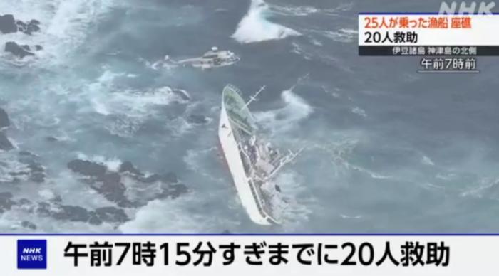 中新网3月4日电 据日本广播协会(NHK)报道,当地时间3日晚,日本伊豆诸岛神津岛北侧一艘载有25人的渔船触礁,其中1人下落不明。