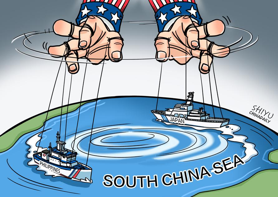 中国日报漫画:菲、日南海兴风作浪,美国背后支持
