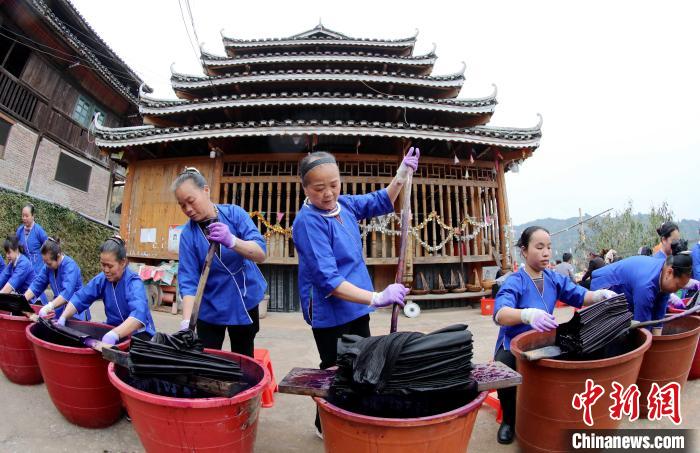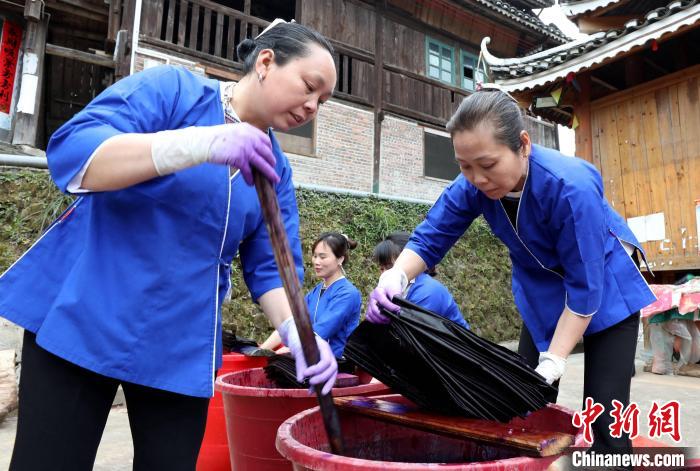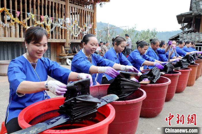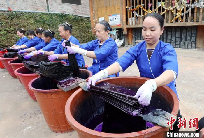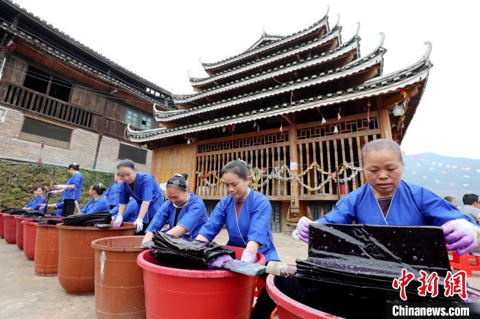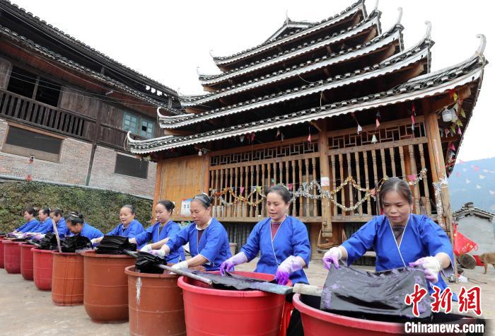 3月8日,广西三江侗族自治县八江镇归令村念马屯开展2024年纪念“三八”国际妇女节活动,当地妇女以集中展示侗布染制技艺等形式,力促侗乡非遗技艺代代相传,助力乡村文化全面振兴。