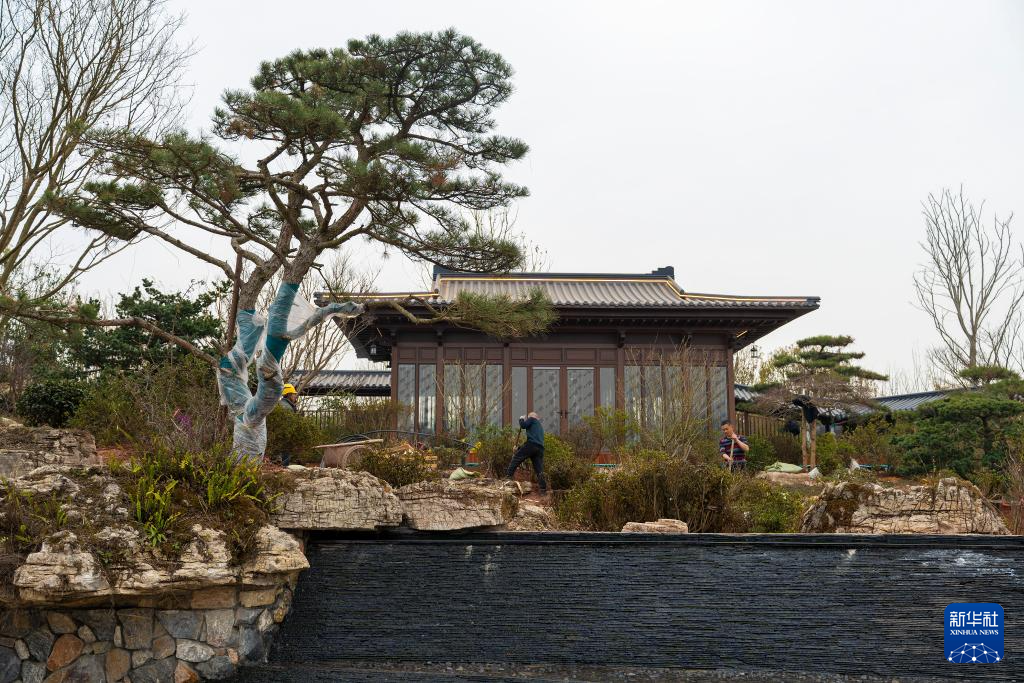 3月8日,工人在宁波园施工。