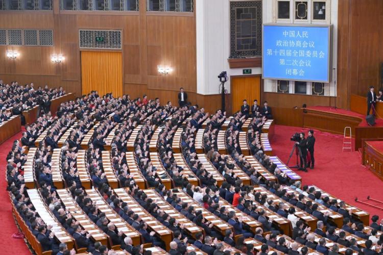 3月10日,中国人民政治协商会议第十四届全国委员会第二次会议在北京人民大会堂举行闭幕会。