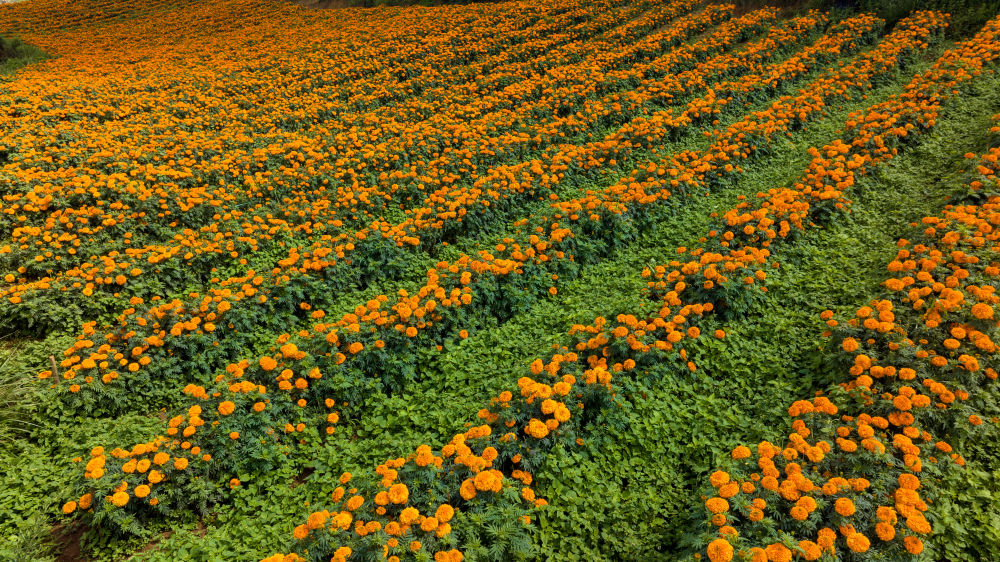 刘浩介绍,从2013年至今,西北勒乡万寿菊种植规模逐年扩大,去年乡里1000多户花农种植了1.5万余亩万寿菊,产值逾4500万元。