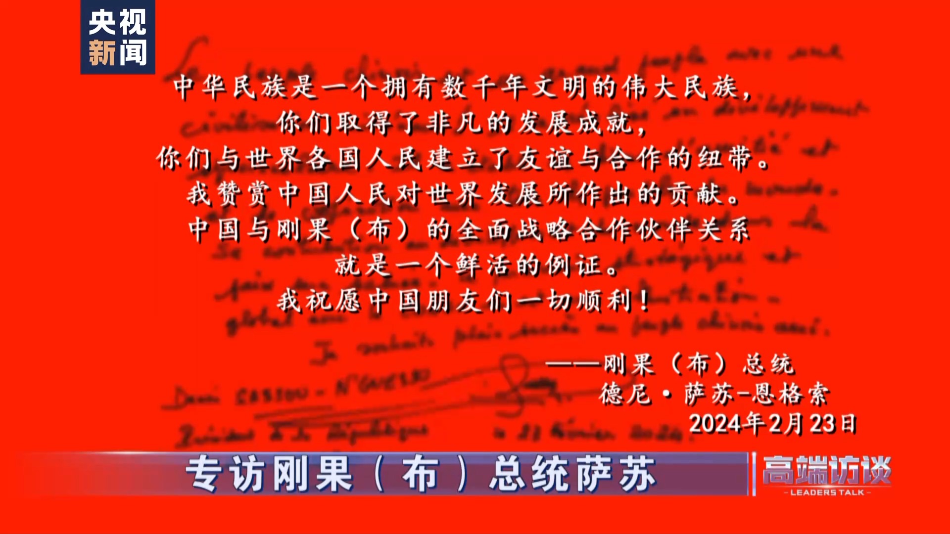 主持人:萨苏总统您好,非常感谢您接受《高端访谈》的专访。1964年2月22日,中国与刚果(布)建交。今年是两国建交60周年,两国一直保持着密切友好的关系。您觉得两国友谊历久弥坚的背后是什么样的原因?