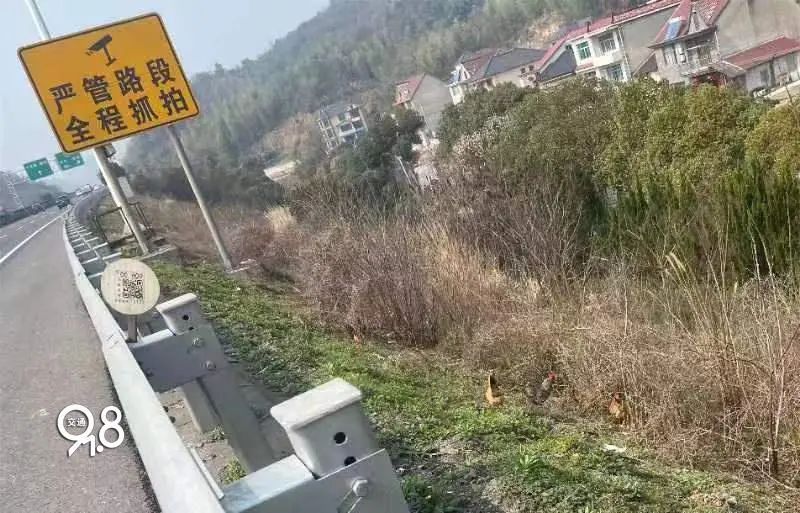随后,民警将老人与鸡安全带离了高速,并通知指挥中心联系高速养护单位对附近隔离栅进行加固。