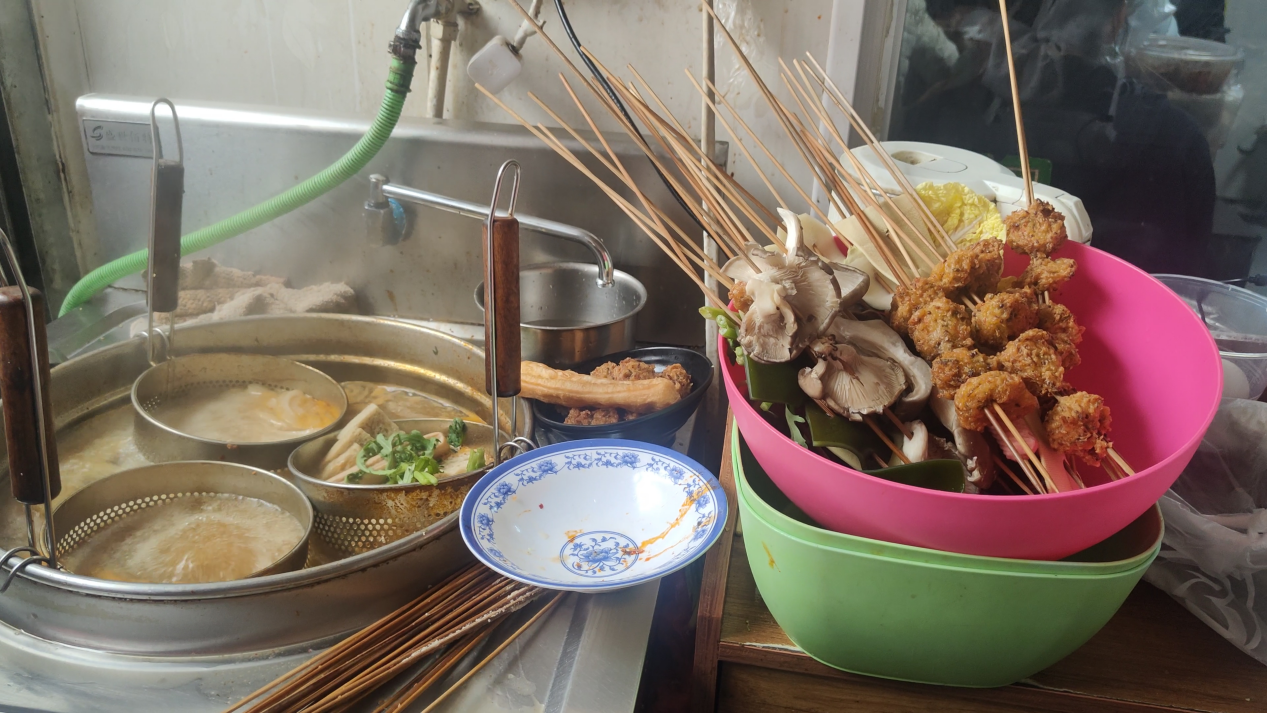很多游客嫌排队时间太久吃不到麻辣烫,都会转而先去吃点别的垫垫肚子,或者到距离市区更远的麻辣烫店去。