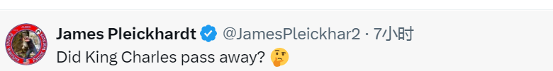 稍早前,据俄罗斯《生意人报》报道,英国驻俄罗斯大使馆18日在社交平台“电报”上发帖称,“英国国王查尔斯三世去世”的说法是“假消息”。“我们很高兴地确认,国王继续履行其工作职责并处理私人事务,”一名塔斯社记者从白金汉宫获悉。