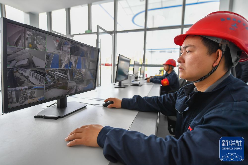 ↑3月20日,在长沙经开区的三一绿电制氢加氢一体站,工作人员在电脑上查看设备情况。