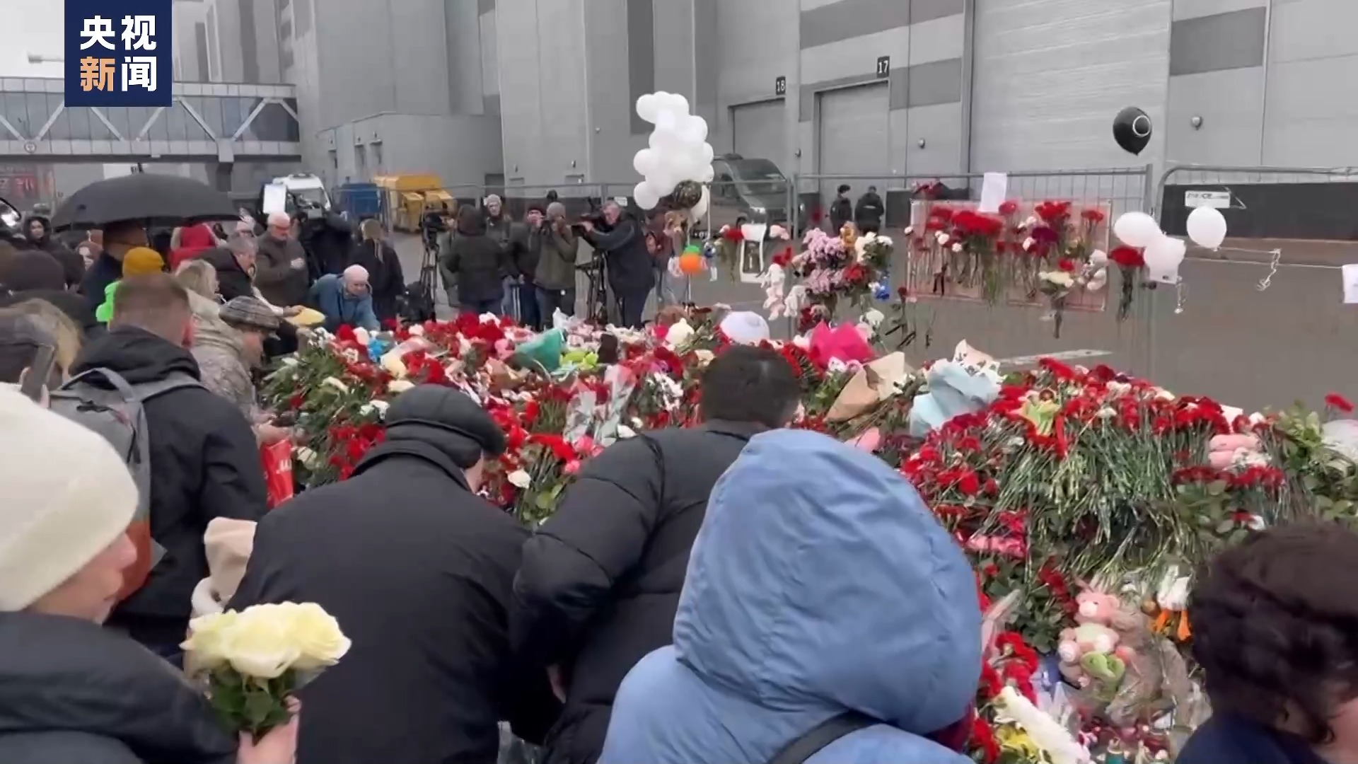 为悼念莫斯科州音乐厅恐怖袭击事件中的遇难者,当地时间24日19时55分,在发生恐怖袭击的 “克罗库斯城”音乐厅外,举行了一场以“鹤”为主题的悼念仪式。