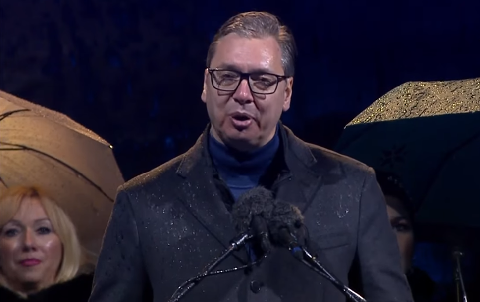 据塞尔维亚《政治报》报道,武契奇24日在普罗库普列市出席悼念北约轰炸南联盟遇难者的活动并发表讲话。新南斯拉夫通讯社报道中所配现场视频显示,武契奇讲话时下着雨。