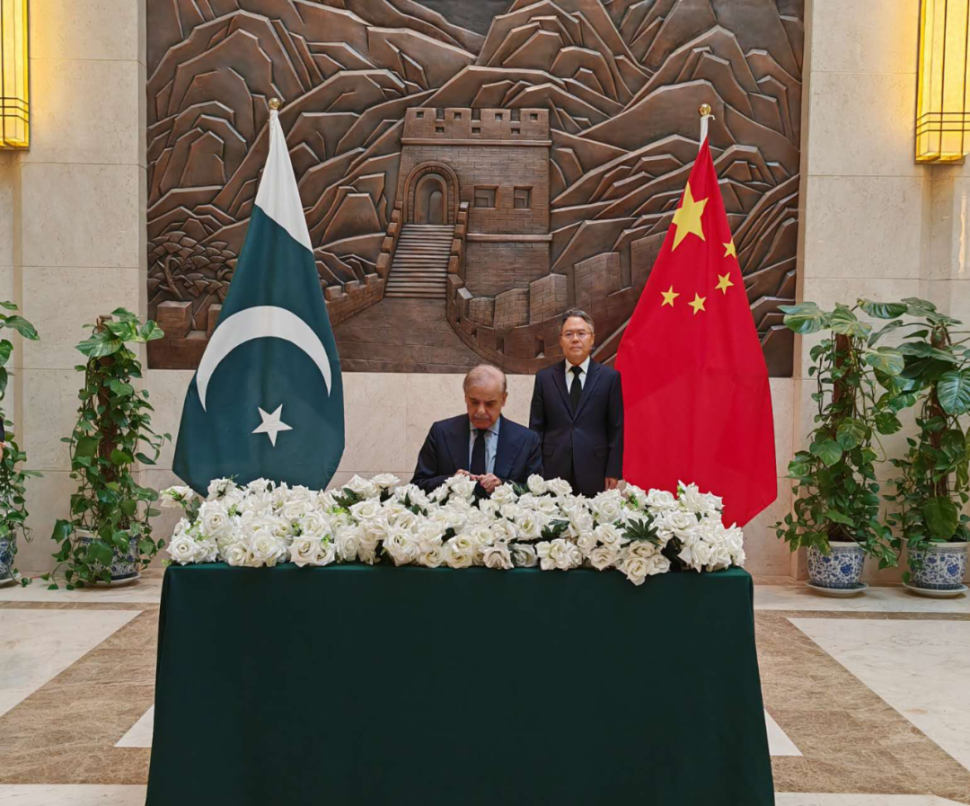 3月26日,巴基斯坦总理夏巴兹来中国驻巴使馆吊唁在达苏水电站项目车队遭遇恐袭事件中遇难的中国公民。