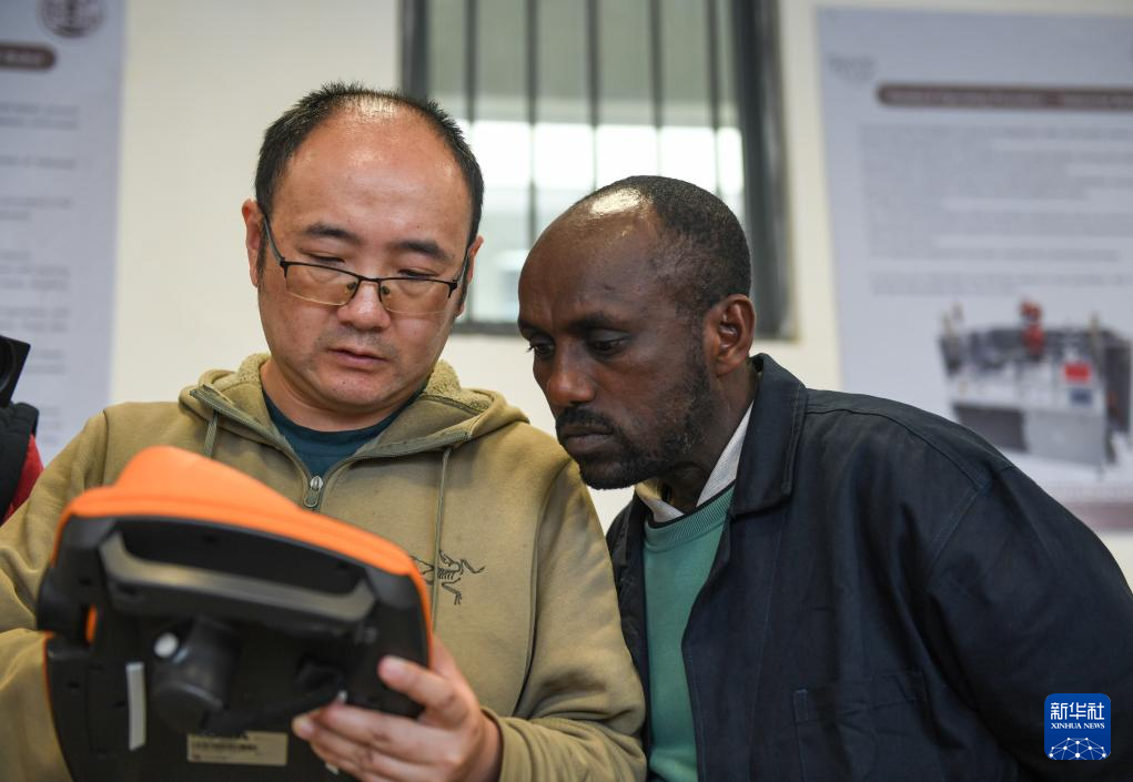 在埃塞俄比亚首都亚的斯亚贝巴的鲁班工坊实训室,当地教师约纳斯·阿凯莱正熟练地操作来自中国的机电一体化平台,模拟流水线上生产过程,向学生讲解自动化设备的操作和运行原理。