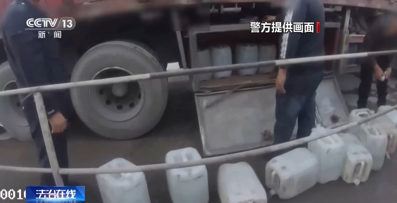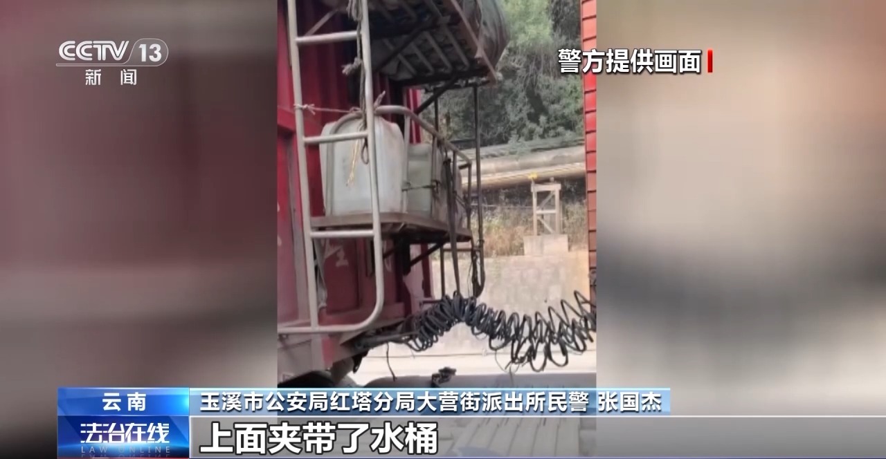 民警到现场后发现,这辆红色大货车的车头与车身连接处有4个装满水的塑料桶。按照驾驶人的说法,这4桶水是正常的备用水。不过,钢铁厂的工作人员却认定大货车上还有其他猫腻,车上的水绝对不止这4桶。很快,民警在货车一侧的工具箱内找到了一些隐藏的塑料水桶。