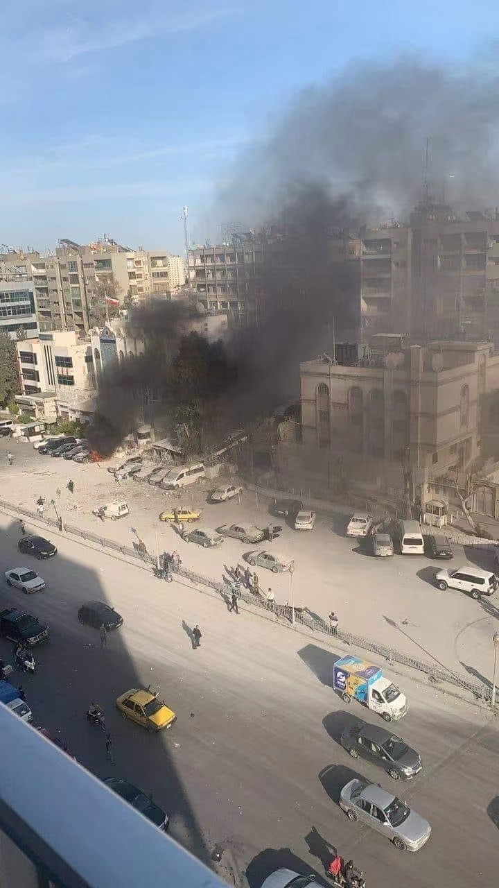根据社交媒体上发布的照片显示,被炸的建筑紧邻伊朗驻叙利亚大使馆一侧,整栋建筑已被炸毁,现场浓烟滚滚。目前尚未有人员伤亡的报告。