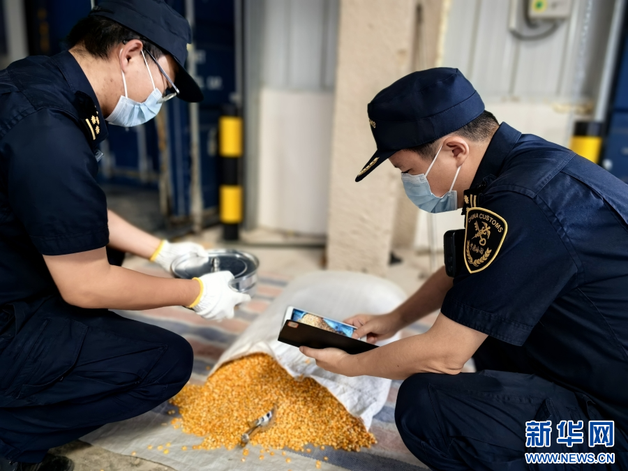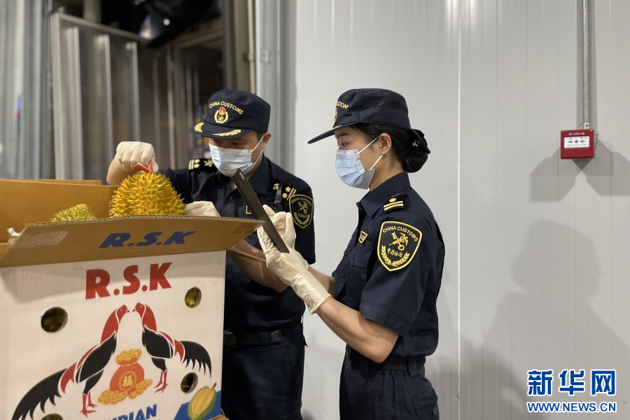 海关工作人员正在对入场货物进行查验(资料图)。新华网发(勐腊海关 供图)